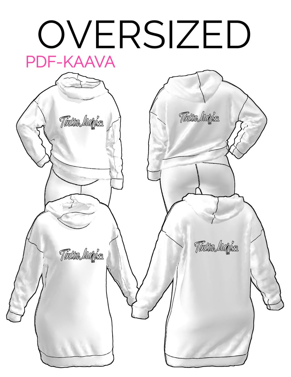 Tämä ihana usean variaation oversized kaava on mukavan väljä ja rento. Kaava sopii hienosti luomujoustocollegelle, luomutrikoolle, pörrökankaalle ja verkkarille.