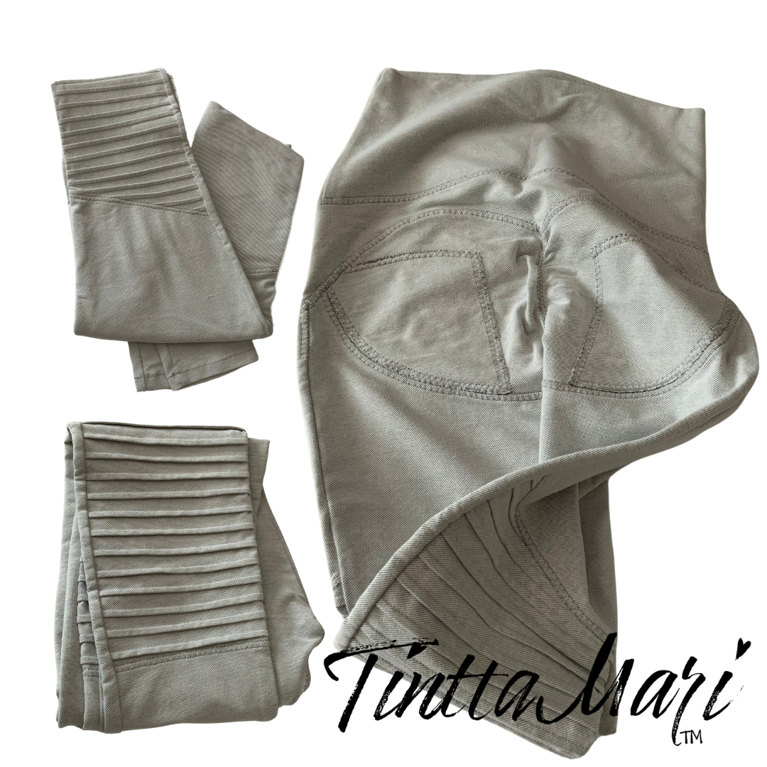 Vaaleasta denim-trikoosta tehdyt Peppupöksyt 34/36 kokoiselle ilman etutaskuja.
